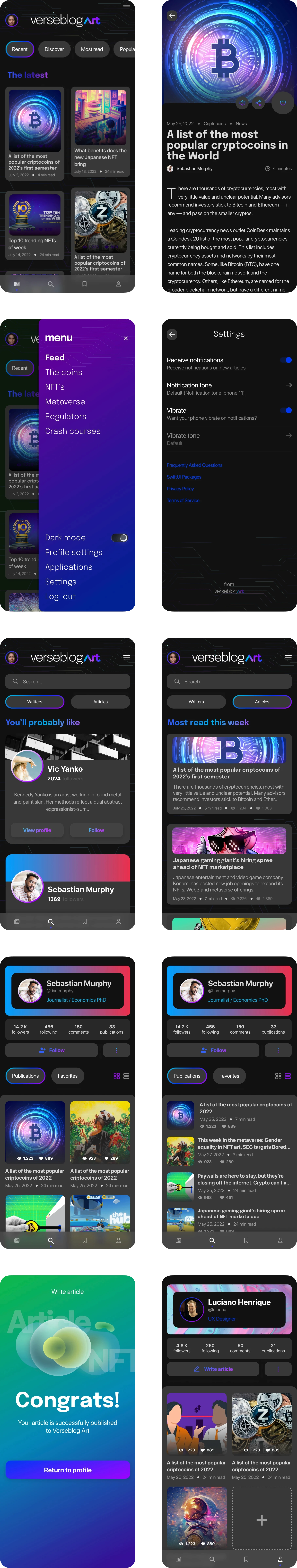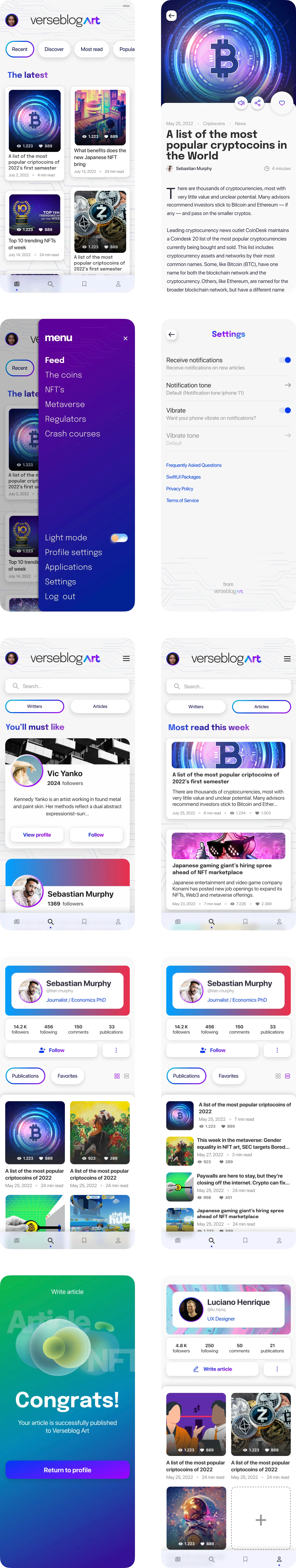 O Verseblog Art é um aplicativo de blog focado no universo de NFTs, criptomoedas e metaverso. Criado como um exercício de aprimoramento de habilidades de UI Design, o projeto visa oferecer uma experiência intuitiva e visualmente atraente, permitindo que escritores, jornalistas e entusiastas compartilhem e consumam conteúdo de forma simples e eficiente.